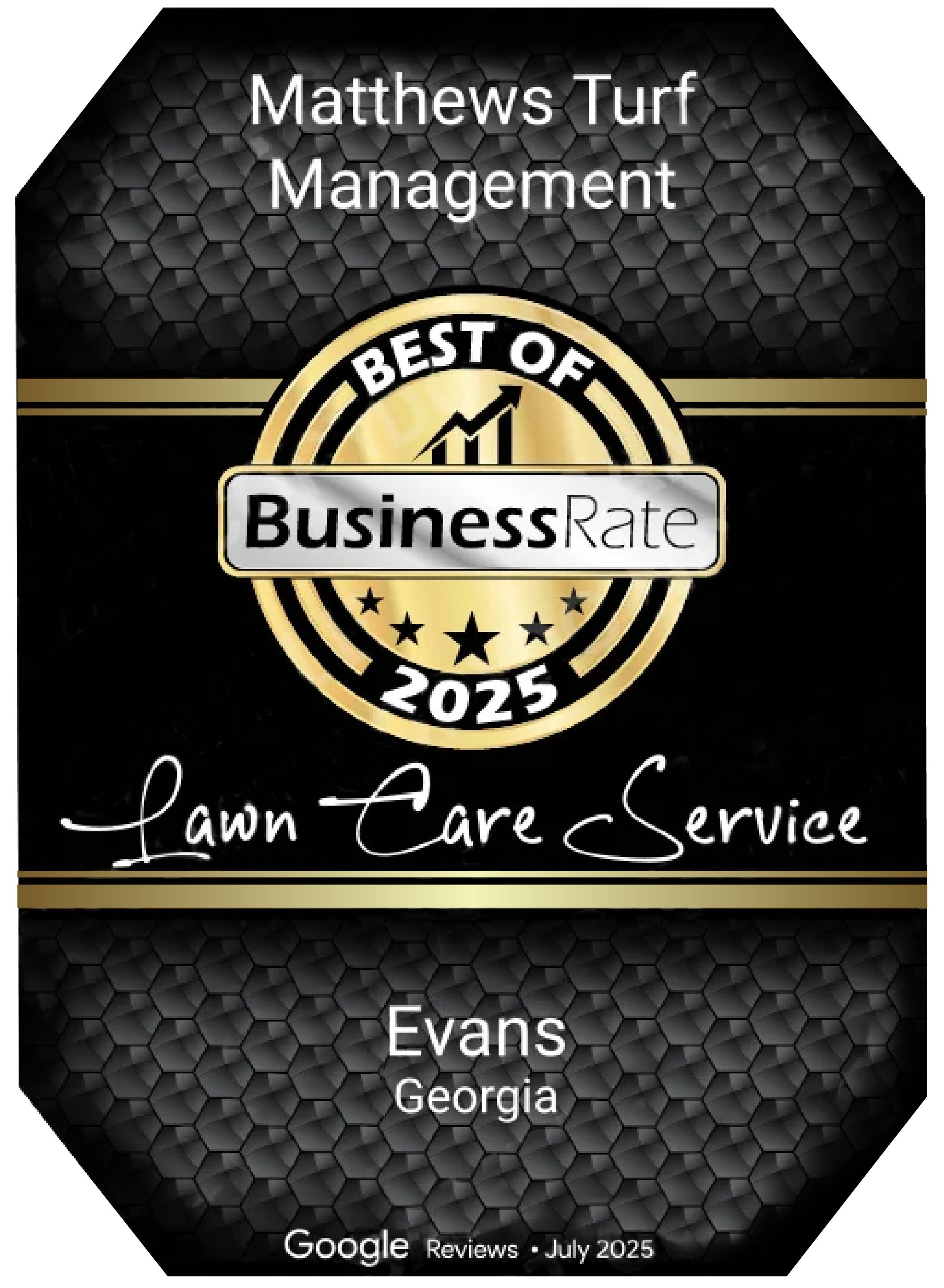 We are excited to announce that MTM has been recognized for the BEST of 2025 Evans Award Winner in the Lawn Care Service category. This honor is based on verified data from Google Reviews, as analyzed and certified by BusinessRate.